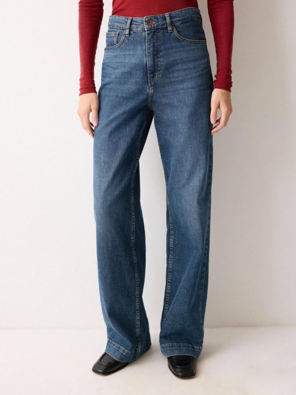 - Regular rise snug upper fit with long loose easy wide leg
