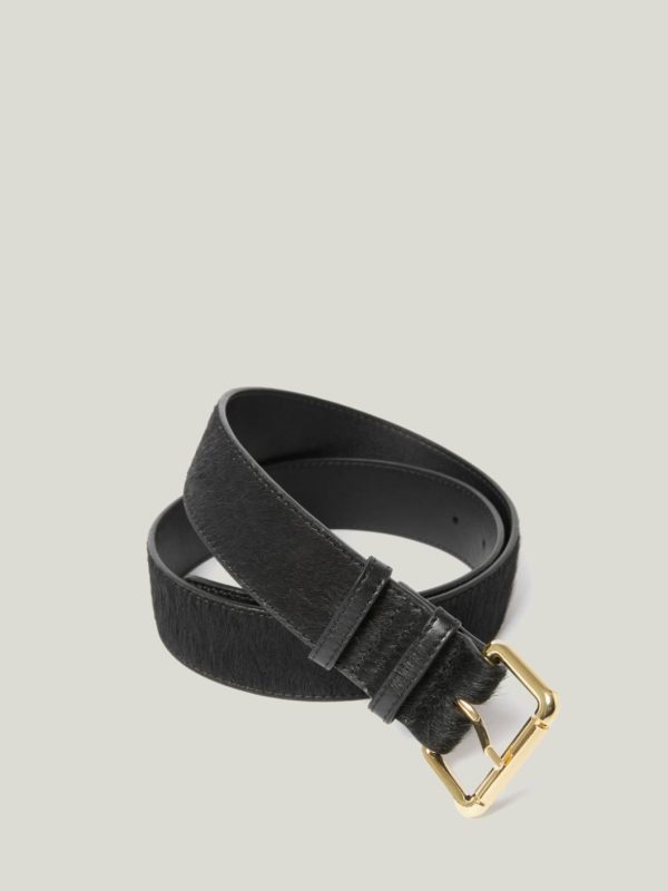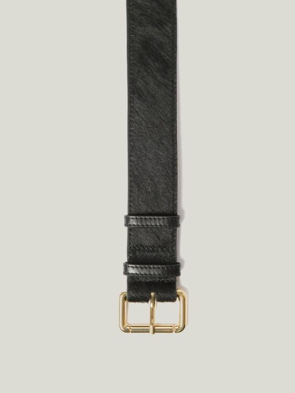 Lend a tactile finish to autumn accessorising with our black belt. Reworked in a soft and textural calf hair, this piece is perfect for updating any pair of jeans, trousers or shorts.