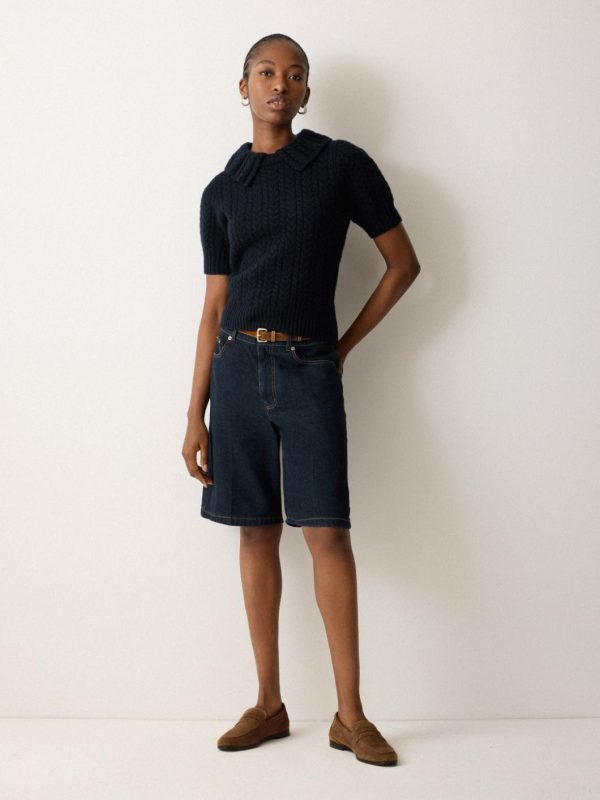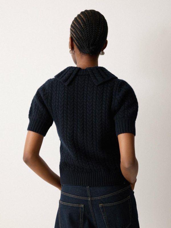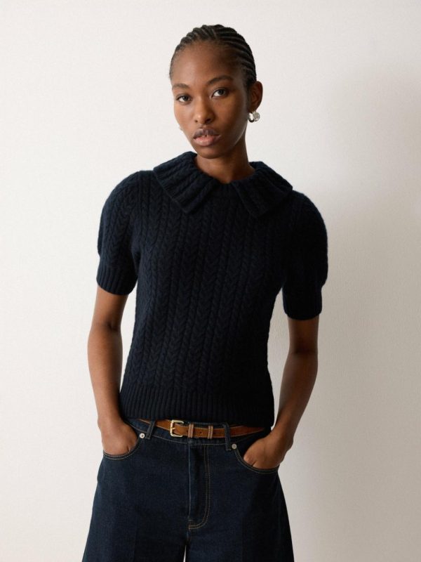 Complete with puff-style sleeves and a preppy collar, this cable knit t-shirt is a refined knit crafted from a blend of wood and cashmere for a super soft, luxurious finish. Perfect teamed with denim, tailored trousers or a midi-length skirt.