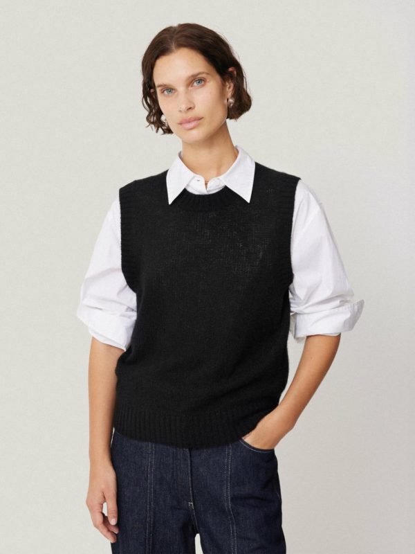 Our best-selling tank arrives in a new fabrication this Autumn: fully traceable Mongolian cashmere sourced from one of the worlds leading cashmere spinners. High crew neckline shape with a deep ribbed hem. Perfect for layering over a shirt or printed dress, or simply wear alone with high waisted trousers. This versatile piece promises endless wardrobe combinations.Fit and Features