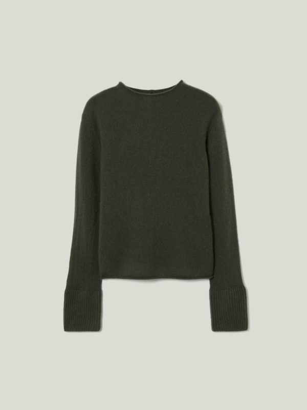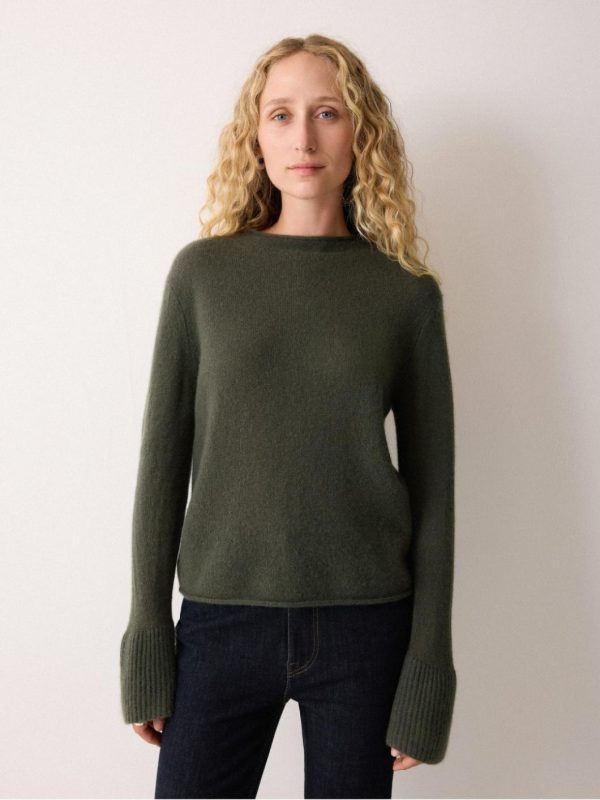 The Eldon jumper returns for another season. Loved for its ultra-feminine silhouette with a minimal rolled neckline and fluted cuffs, this wardrobe signature highlights the sumptuous, lofty feel of Cloud cashmere which has been knitted off gauge. The perfect transitional layer for autumn and beyond.