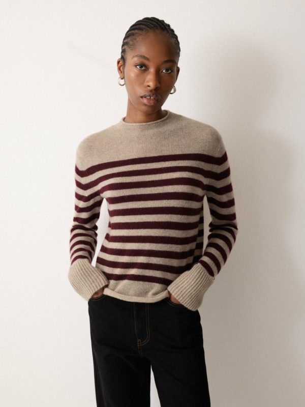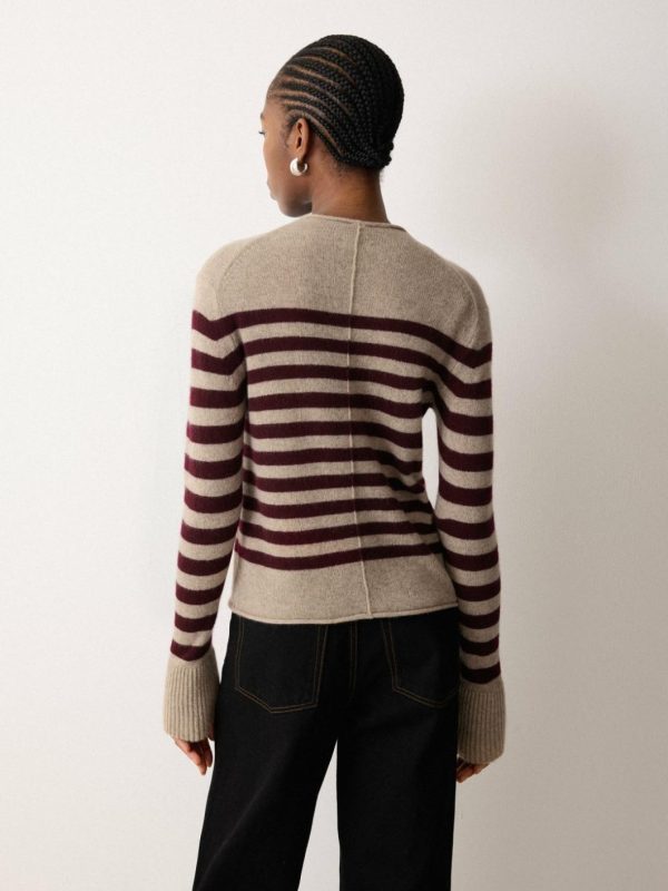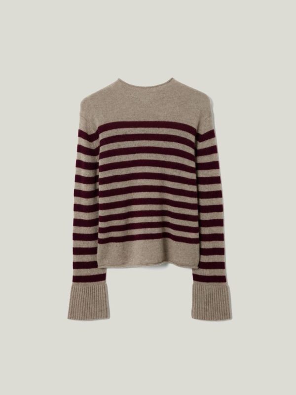The Eldon jumper returns for another season, this time updated with a timeless Breton stripe. Loved for its ultra-feminine silhouette with a minimal rolled neckline and fluted cuffs, this wardrobe signature highlights the sumptuous, lofty feel of Cloud cashmere which has been knitted off gauge. The perfect transitional layer for autumn and beyond.