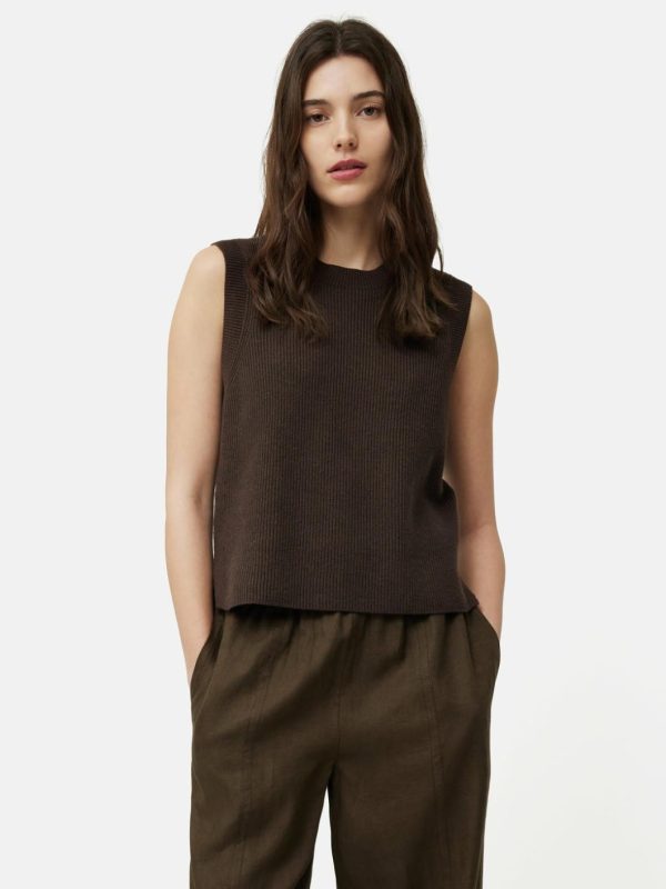 Soft Cotton blend layering tank. Constructed in a rib knit featuring angled ribs at the side seams and slits at the hem. This versatile piece promises endless combinations for your wardrobe. Wear layered over a shirt or blouse, pop over a printed dress or simply wear alone with high waisted trousers.Fit and Features