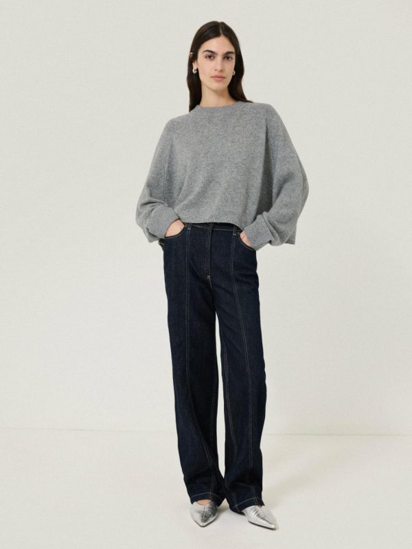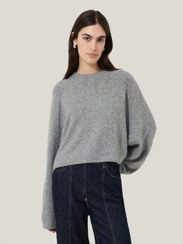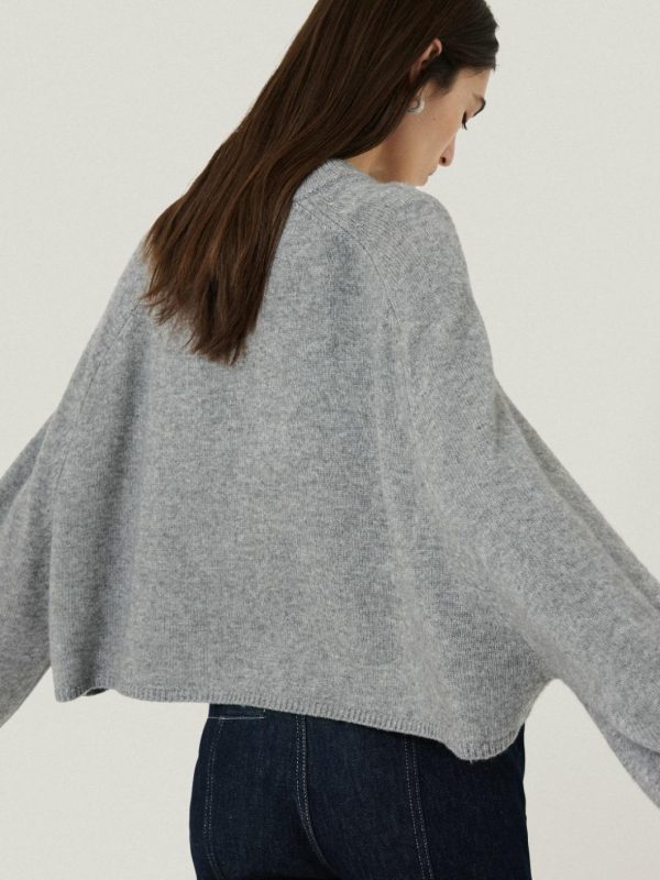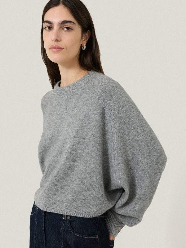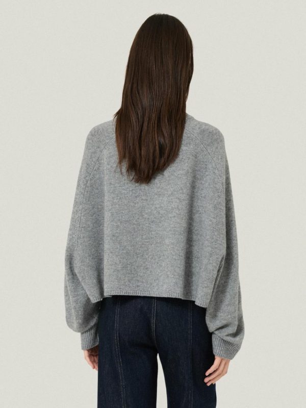 A unique fusion of a poncho and a jumper in luxurious merino wool, this crew neck style features a distinctive design where half the sleeve remains fixed. The boxy, cropped silhouette allows for dynamic layering. We love it with the sleeves rolled up against a tailored pair of trousers.