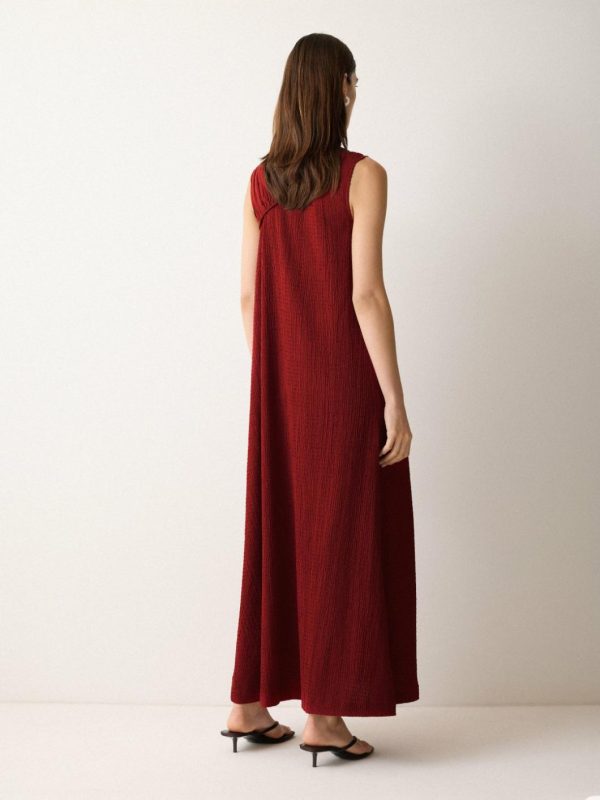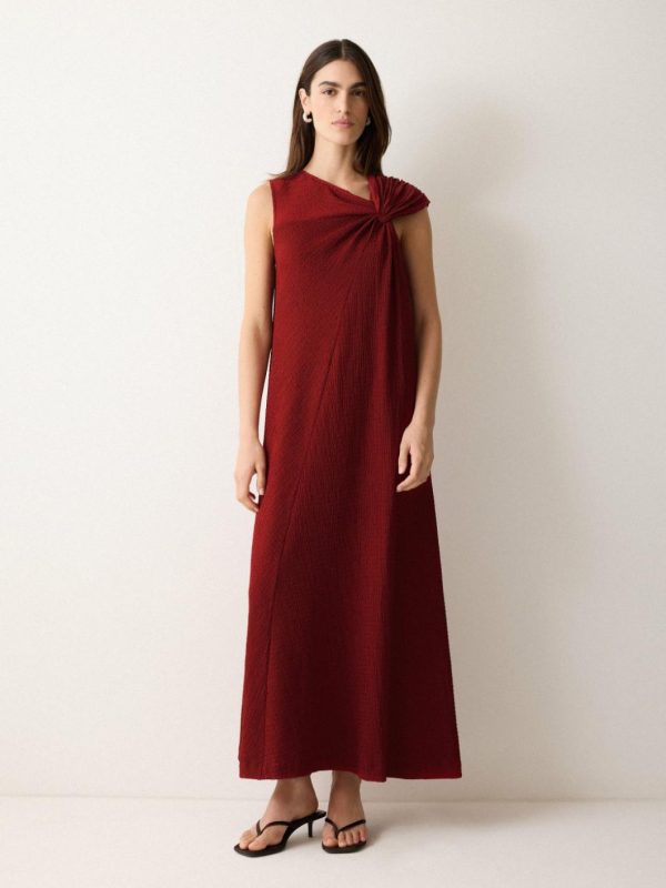 Showcasing a full-length silhouette, this flowy dress is designed to move in all the right places, with soft crinkle jersey adding the perfect amount of texture and detail. It’s given a twist with flattering ruched detail at the neck to create a more elevated evening look. Style with a simple black heel and clutch.