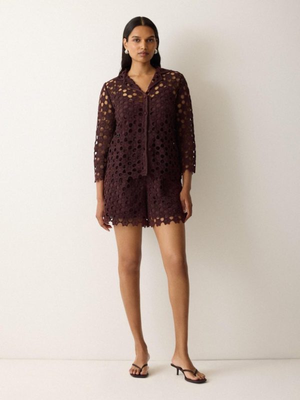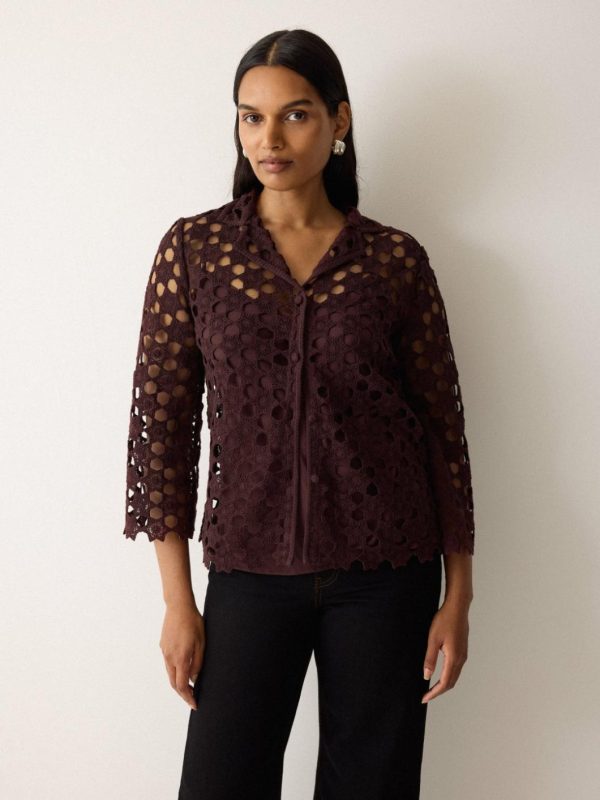 Crochet Relaxed Top Oxblood | Women Jigsaw Shirts & Tops