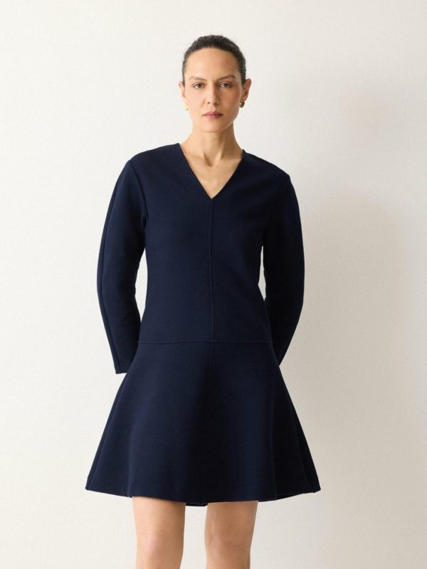 The perfect day-to-night dress just stepped in. Crafted from a mid-weight fabric, darted details to the sleeves create beautiful structure, complemented with a dramatic A-line silhouette that requires minimal accessorising.