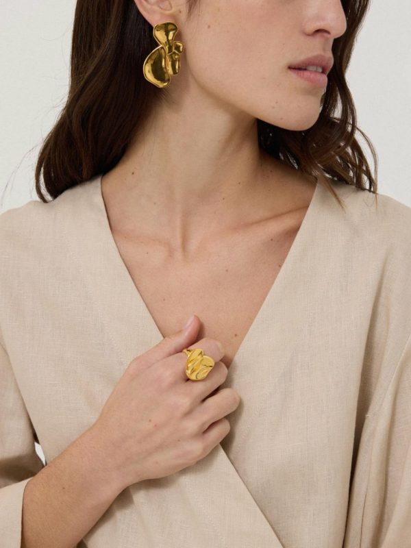 Echoing the floral pattern stories for Spring 2025, this ring is a further testament to the natural beauty of flowers in a deconstructed petal design. Crafted from gold-plated brass, the organic design creates a bold statement for day or night.