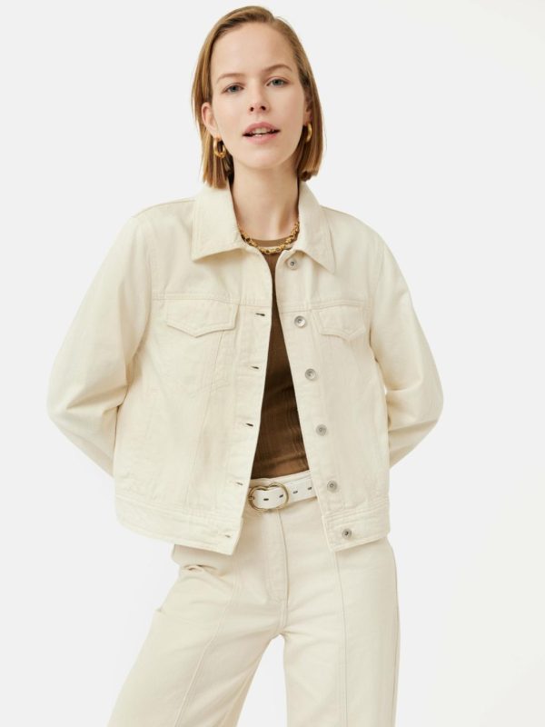 Authentic denim jacket in ethically sourced premium ecru cotton denim. Get the look and wear over our printed tea dress or double up with our jeans. Fit and Features