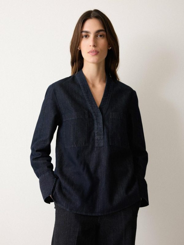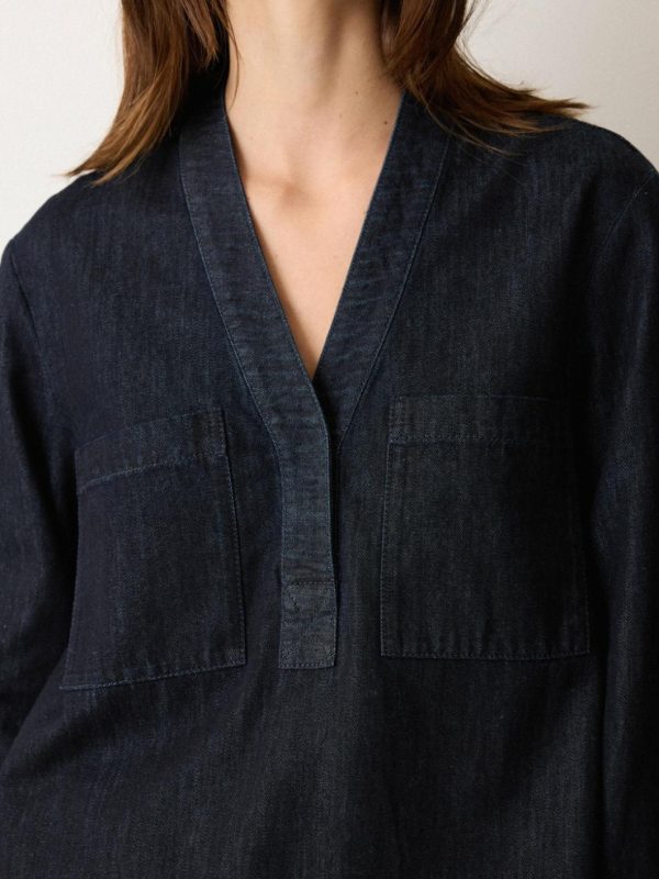 Our denim capsule collection for pre-AW25 is reminiscent of the brand’s DNA, where a clean Japanese aesthetic is celebrated through silhouette and detail. Included is this tunic shirt, combining the softness and fluidity of lyocell in an indigo wash. Effortless and versatile, the relaxed shape lends ease for weekend wear.