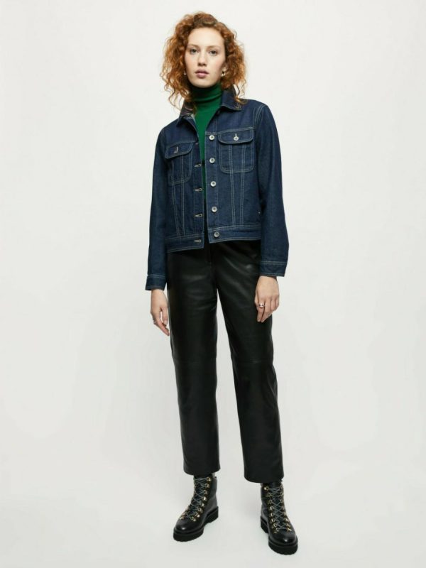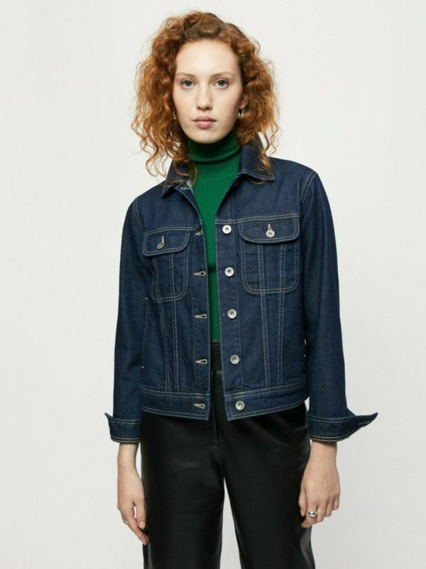 The classic trucker jacket. Sustainable fixed denim in an authentic vintage stonewash blue. Slim fit with side pockets and copper trim. Get the look and wear over our printed tea dress or double up with our jeans. Fit and Features