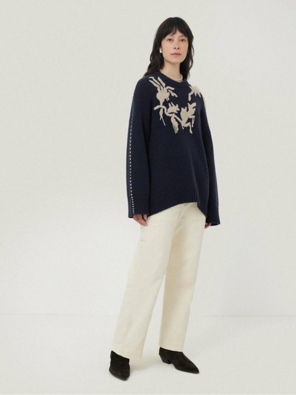 Embroidered Knitted Jumper Navy | Women Jigsaw Jumpers