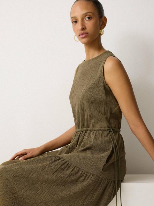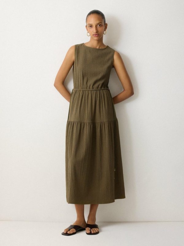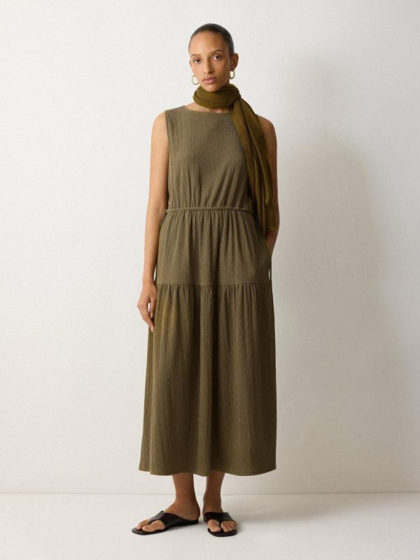 Fine Crinkle Jersey Maxi Dress Khaki | Women Jigsaw Dresses & Jumpsuits