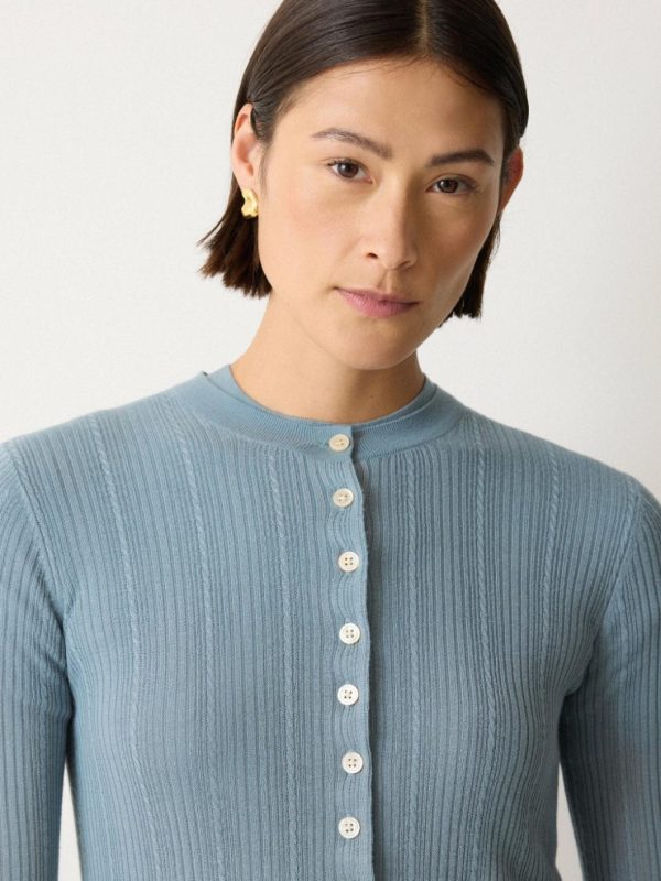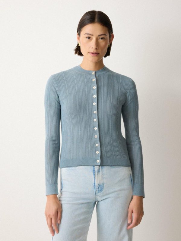 Fine Pointelle Cable Cardigan Blue | Women Jigsaw Knitwear & Cashmere