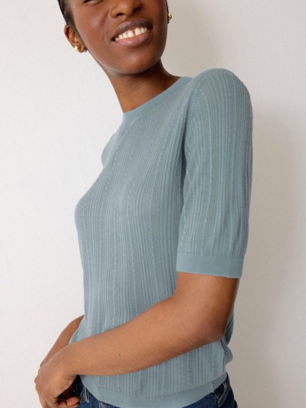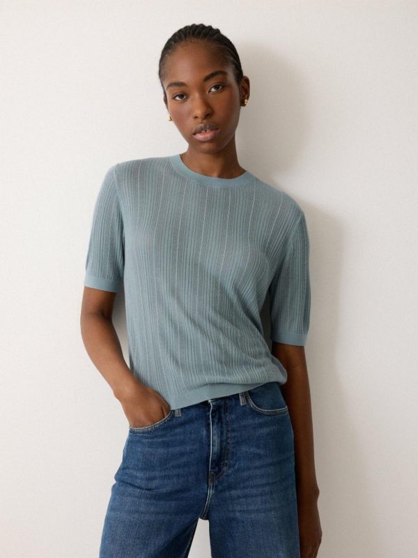 The basic tee is updated for the new season in a fine pointelle jersey, with intricate cable detail for a tactile, knitwear-inspired twist. Wear on its own during summer evenings and then layer up for the cooler months.