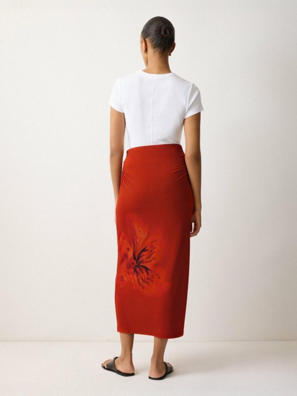 Fire Flower Jersey Skirt Red | Women Jigsaw Skirts