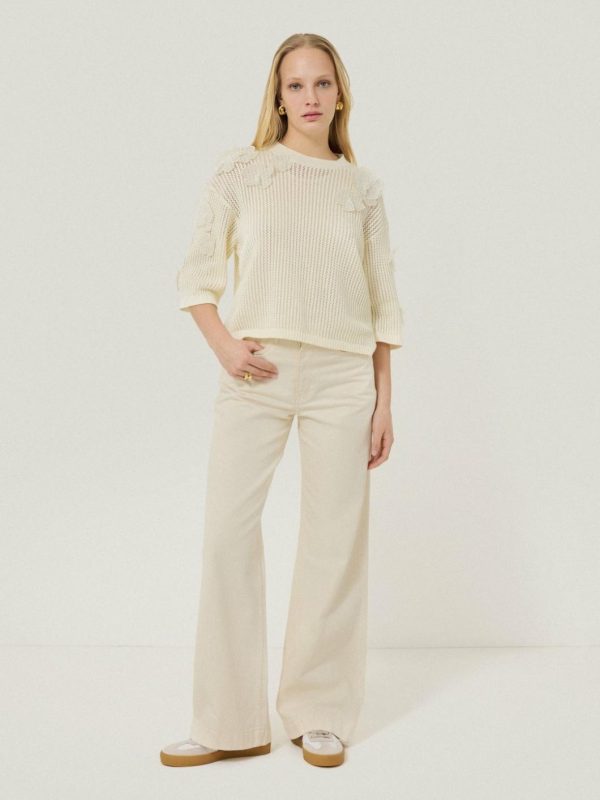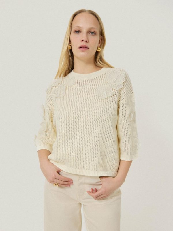 Floral Applique Knit Top Cream | Women Jigsaw Shirts & Tops