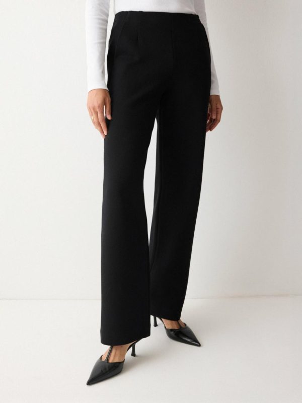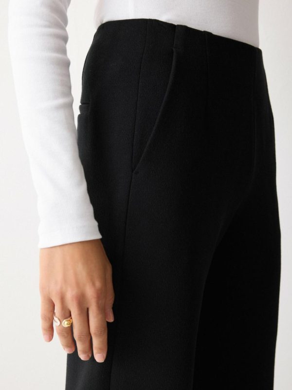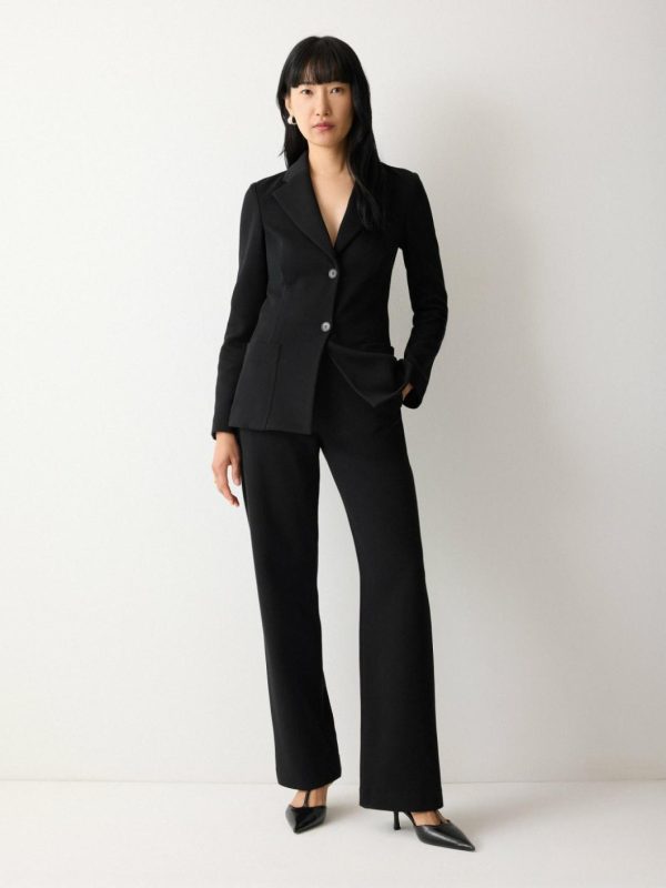 For timeless tailoring you will reach for again and again, these black trousers cater to every eventuality. Crafted from heavy crepe jersey, the soft, mid-weight fabric has subtle stretch for comfort throughout the day and night, while the sleek silhouette is a no-brainer with a plain top and the matching cinch jacket.
