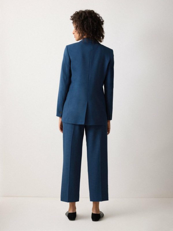 The Knox blazer is reimagined for the new season in a crosshatch fabric, sharpening your tailoring with a textural finish. Cut for a sleek, single-breasted front with all the classic details you would expect from a refined blazer, this timeless piece is ideal as a head-to-toe suit with the matching trousers, as well as wearingcasually with denim and a simple white tee.
