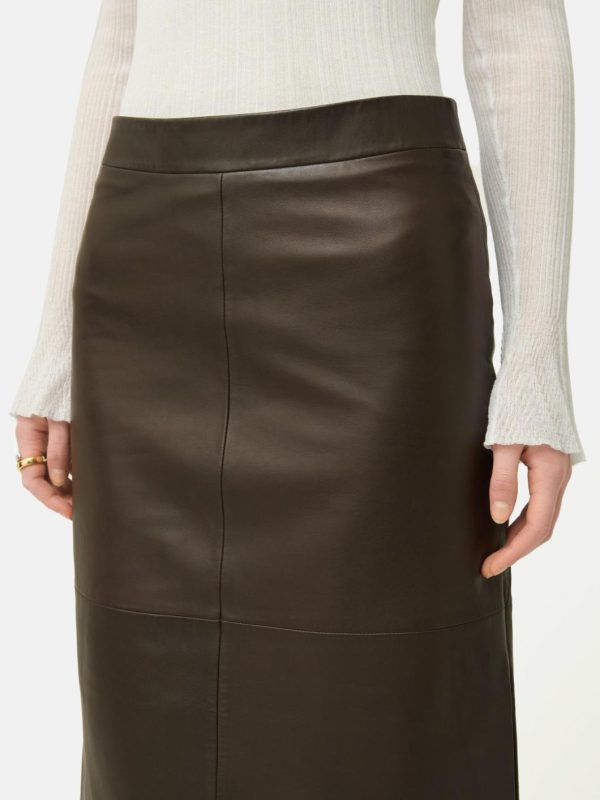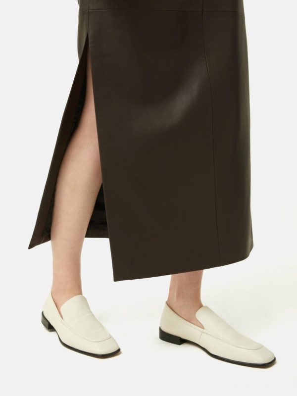 Fashioned from sumptuously soft leather, this opulent maxi skirt asserts itself as a seasonal essential. Boasting a clean, contemporary silhouette complemented by daring deep side slits, it demands attention. Pair it with knee-high boots and a slouchy knit for an unmistakably perfect autumn look.