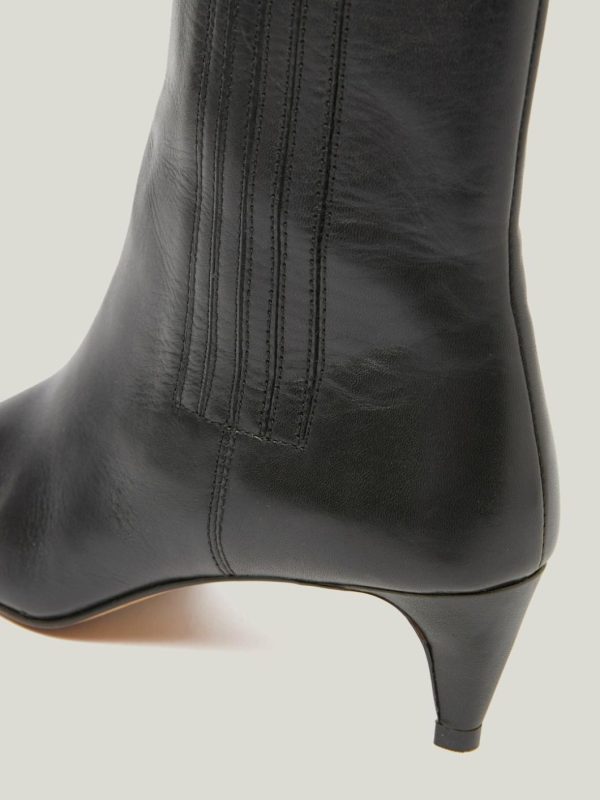 A chiselled toe and kitten heel sharpens the Valerie boot, reworked for the new season in smooth and supple leather. A side zip fastening provides easy access getting on and off. A no-brainer with all your day-to-night looks.