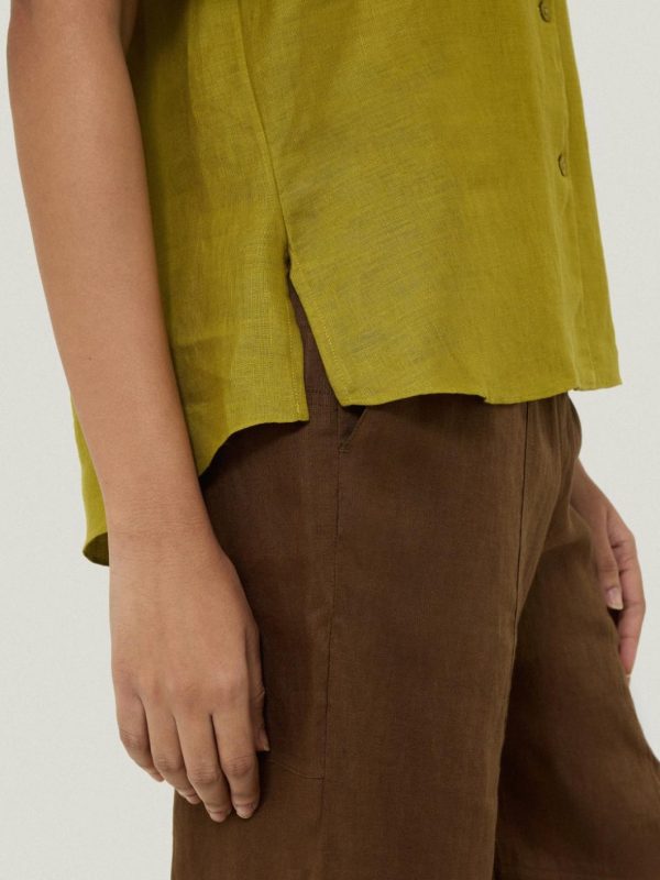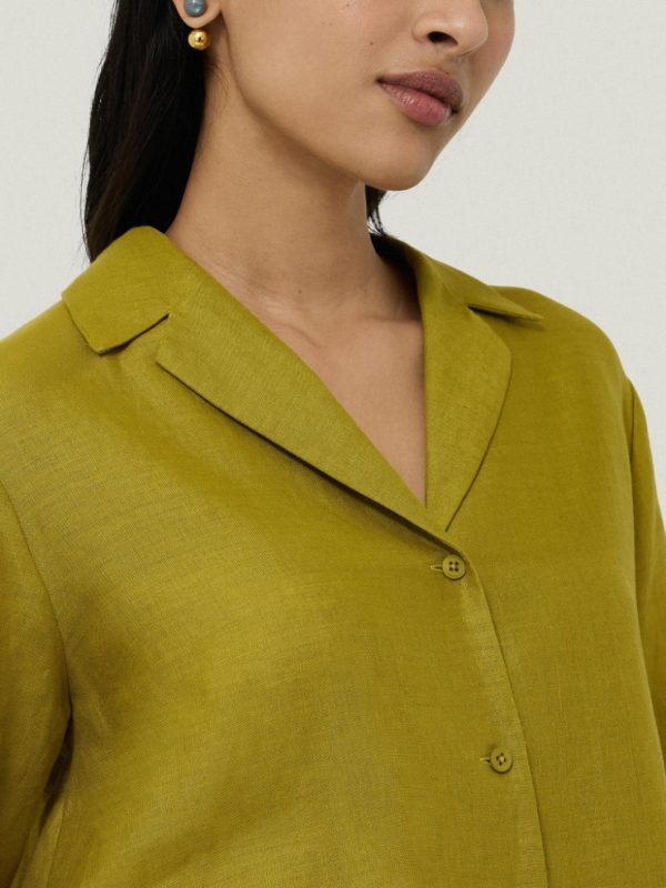 Add this linen short sleeve shirt to your warm weather repertoire for endless versatility. Vibrant in a chartreuse hue, our linens only gets better over time, becoming softer the more they are washed. Detailed with a box pleat at the back, wear with the matching shorts for a laidback co-ord.