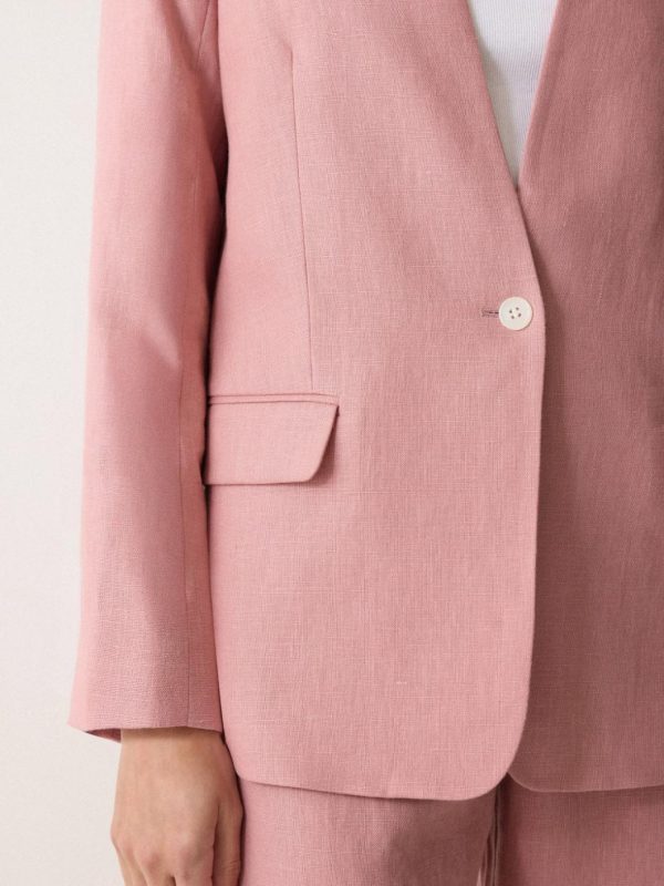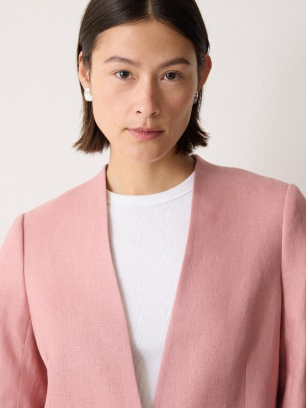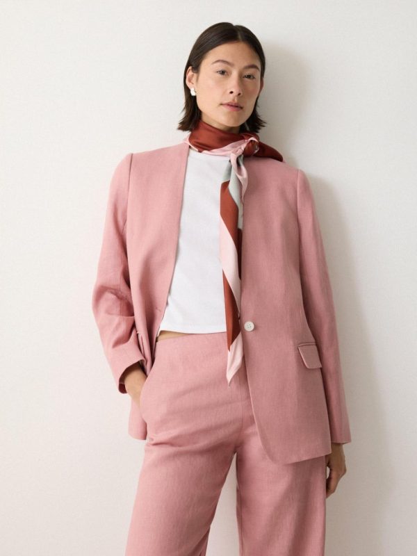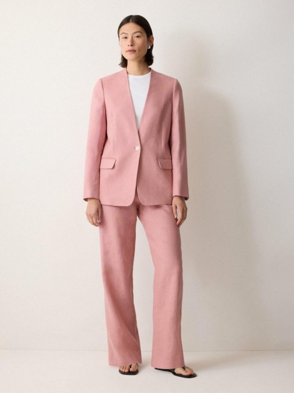 A collarless neckline creates a sleek yet contemporary silhouette when it comes to this beautiful tailored blazer. Soft, breathable and designed to only get better over time, wear solo with the matching suit trousers for a luxe summer evening look without breaking a sweat.