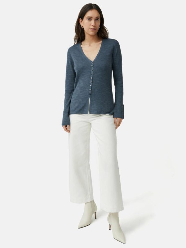 Meet your transeasonal companion: the slim fit cardigan, designed for effortless layering. Crafted from a fine gauge linen-cotton knit with subtle yarn slubs, this easygoing style features raw edge finishes for a natural feel. Complete with a mother-of-pearl button-through front, it adds a touch of sophistication to your versatile wardrobe.