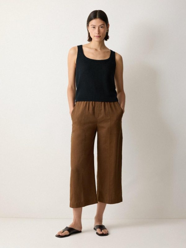 A sleeveless version of our knitted linen T-shirt, this vest features a chic square neckline offset with a cropped, boxy fit.