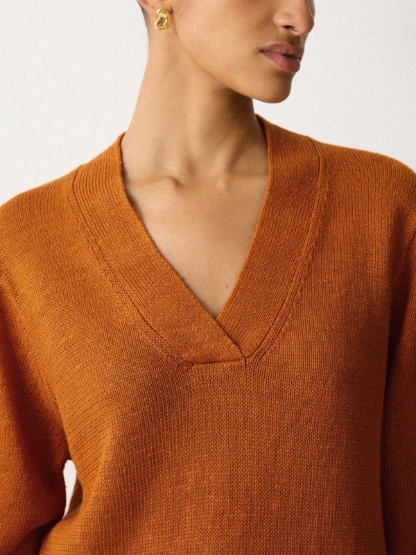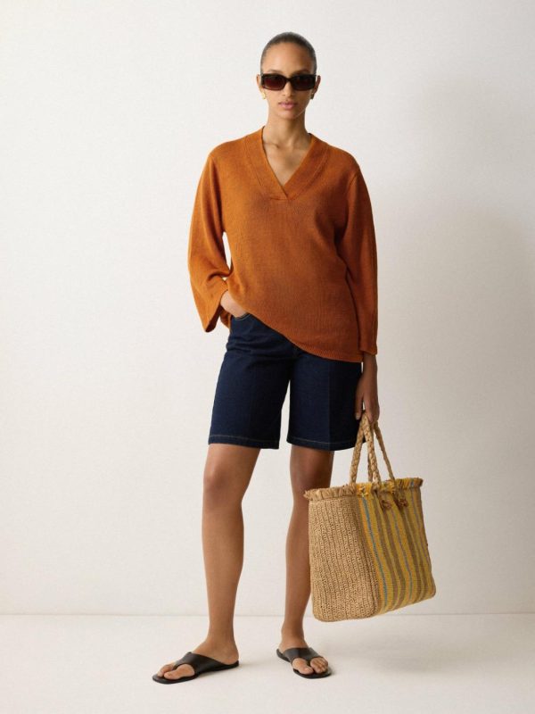 Proof knitwear isn’t just reserved for the winter months; this V-neck jumper is perfect for the summer too, knitted from a soft, breathable linen with a slouchy, oversized fit for keeping cool.