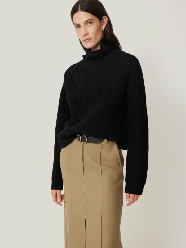 Merino Fishermans Rib Jumper Black | Women Jigsaw Jumpers
