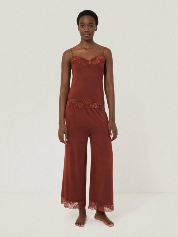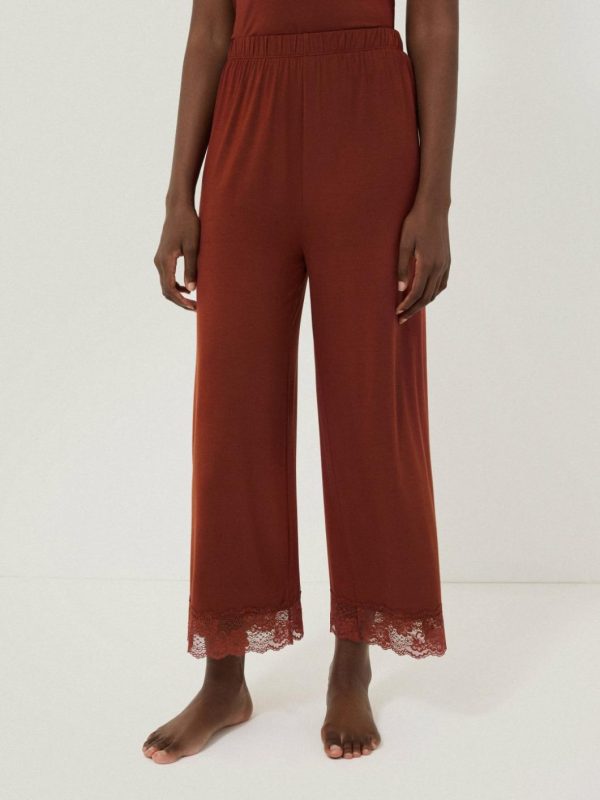 Downtime and beyond calls for these wide leg pyjama trousers. The super-soft modal fabrication is detailed with an elasticated waistband for further comfort and elegant lace trim hems. Designed as part of a matching set.