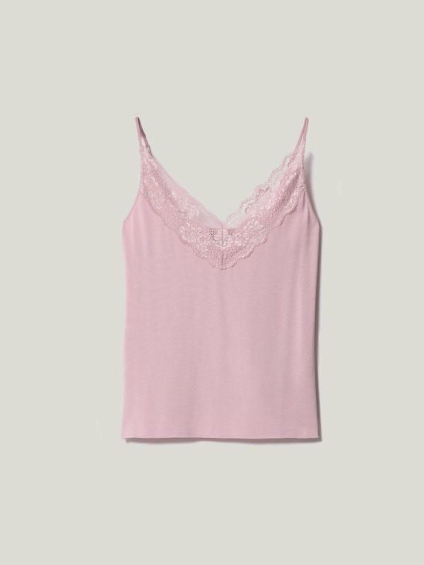Featured in a range of classic colours, this modal lace vest is a bestselling under layer. Cut from soft modal jersey with slim adjustable straps, lace trim detail adds a subtle vintage-inspired twist.