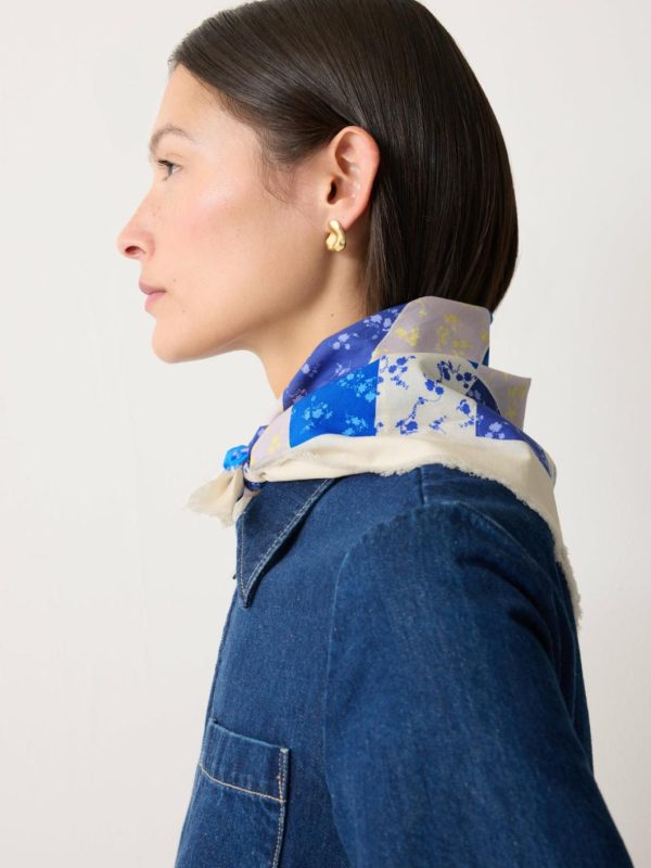 This bandana scarf reimagines one of our bespoke illustrated florals in a patchwork design. Printed onto a lightweight wool with fringed edging, this piece will lift any outfit with the perfect finishing touch.