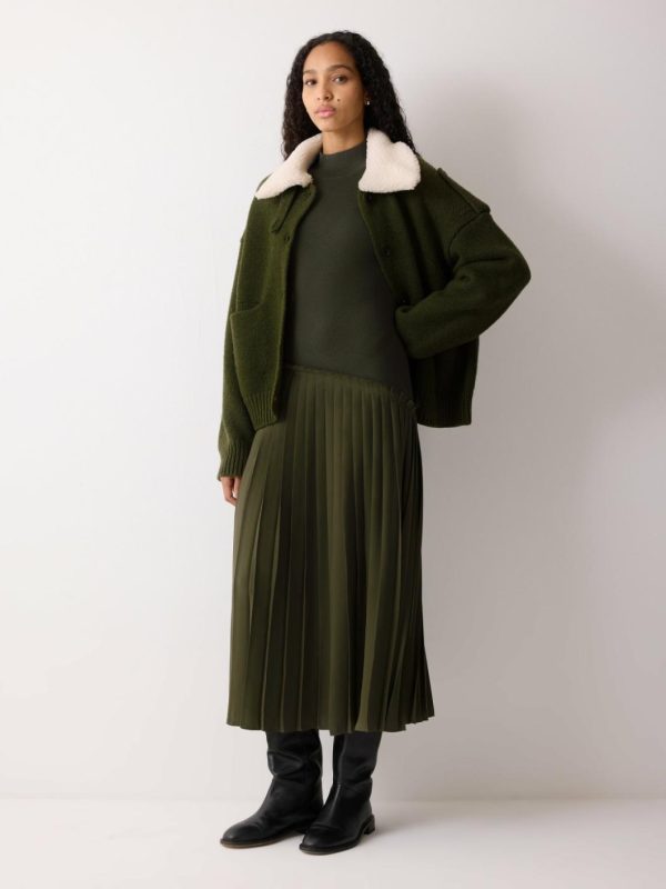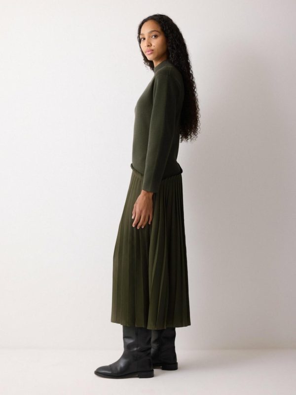Opt for this jumper dress when the colder months arrive. Warm and cosy in a sumptuous wool-blend fabrication, it incorporates playful elements through the contrast pleated skirt and subtly ribbed collar. We love the versatility of this piece, which is perfect for styling a multitude of ways.