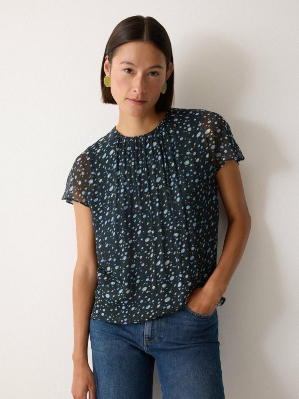 This season, our in-house designers reimagined the traditional polka dot print by widening each dot, creating a fresh yet refined motif that feels instantly contemporary. Set on a sheer, lightweight fabric, the Polka Dot Chiffon Top is framed with floaty sleeves and a high neckline for a refined fit and feel.