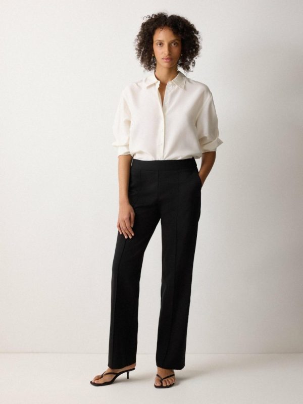 Elevate your everyday looks with a sports-luxe twist. These trousers have been crafted from Spanish ponte jersey for subtle stretch and detailed with a grosgrain trim at the leg, they’re sure to form a bridge between your smart and casual dressing. Finished with leg seam detail and an elasticated waistband for added comfort, team with a cashmere sweater or oversized poplin shirt and sneakers.