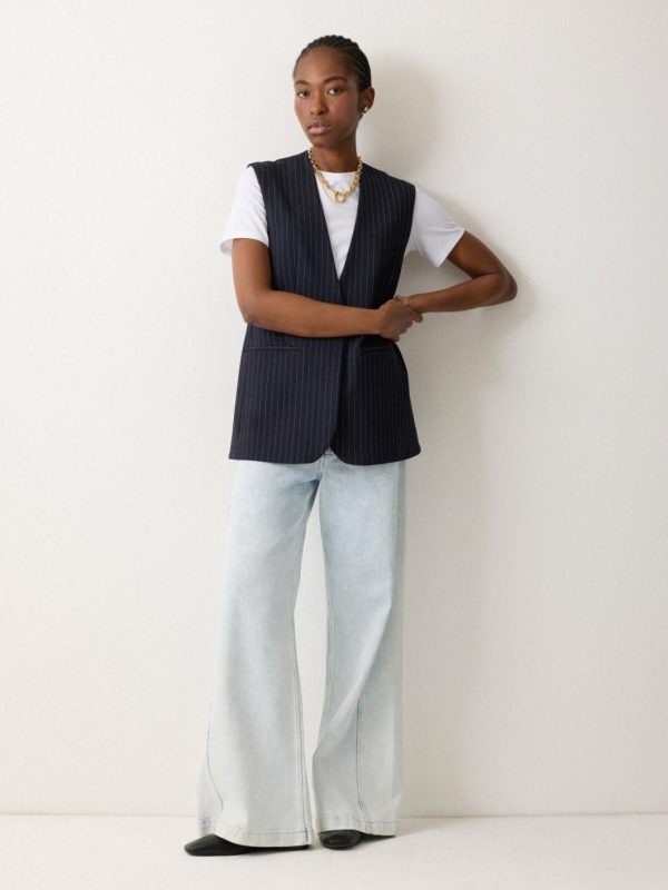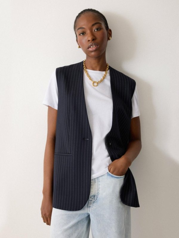 Ponte Pinstripe Waistcoat Navy | Women Jigsaw Shirts & Tops