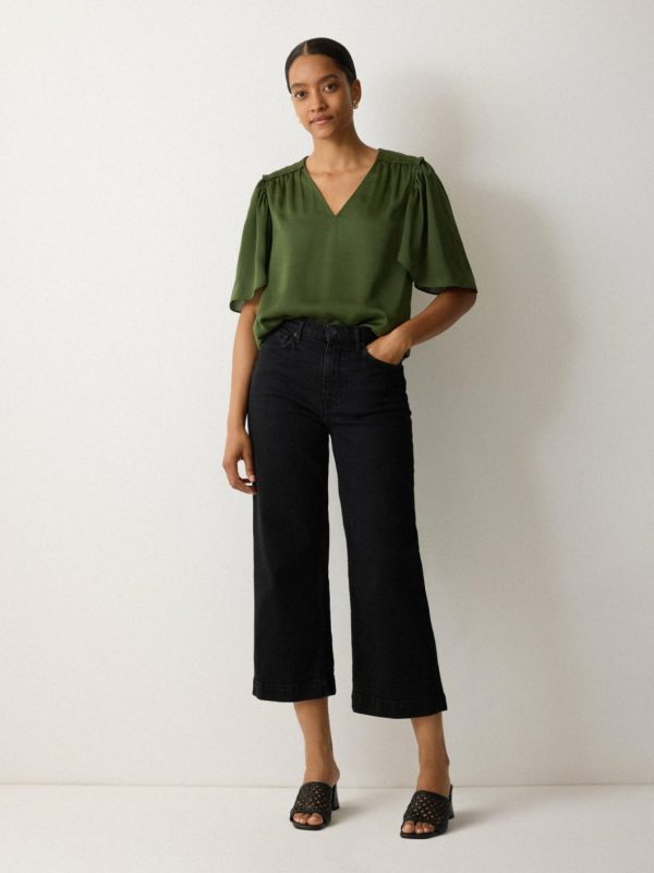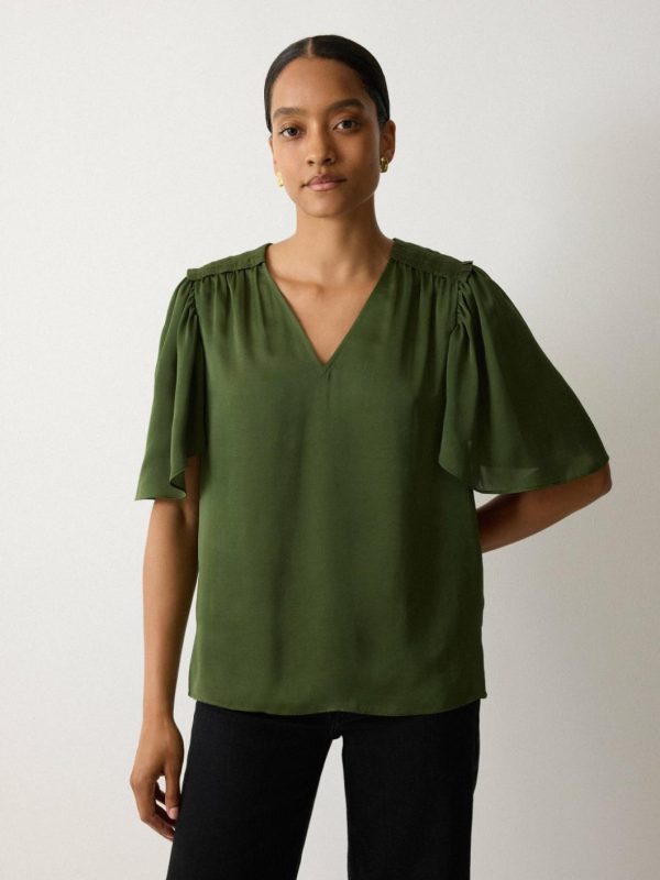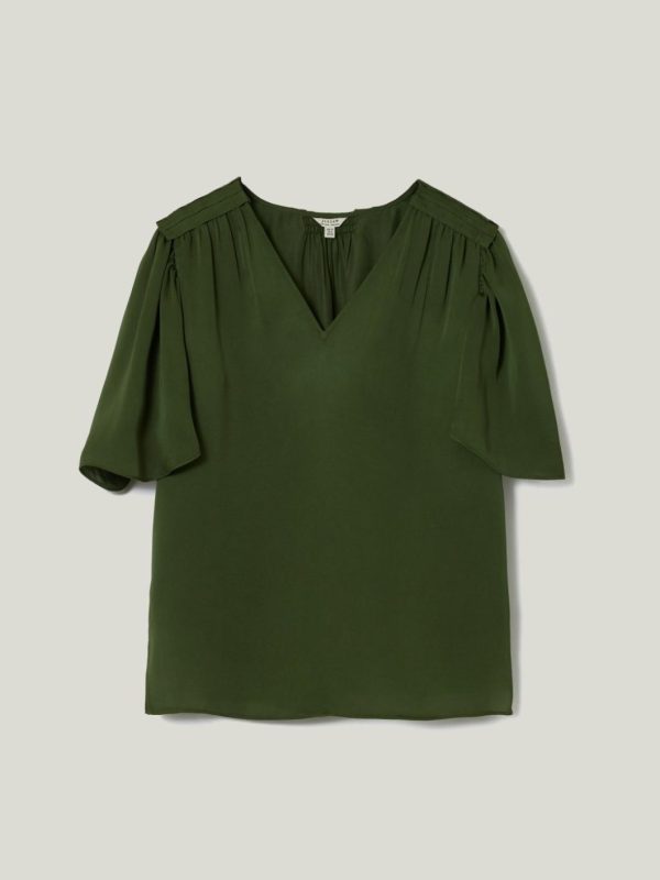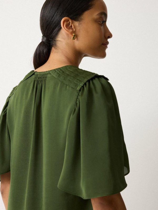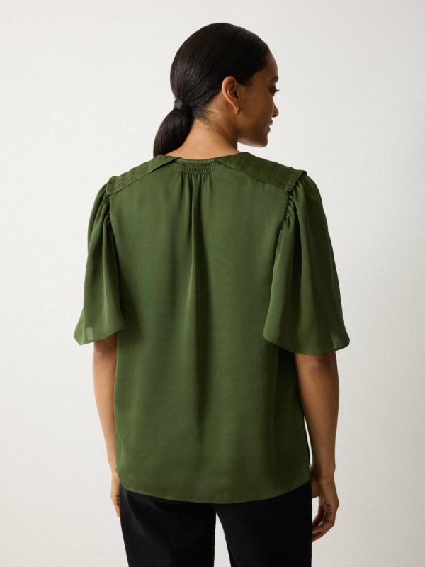 Recycled Satin Pleated Blouse Green | Women Jigsaw Shirts & Tops