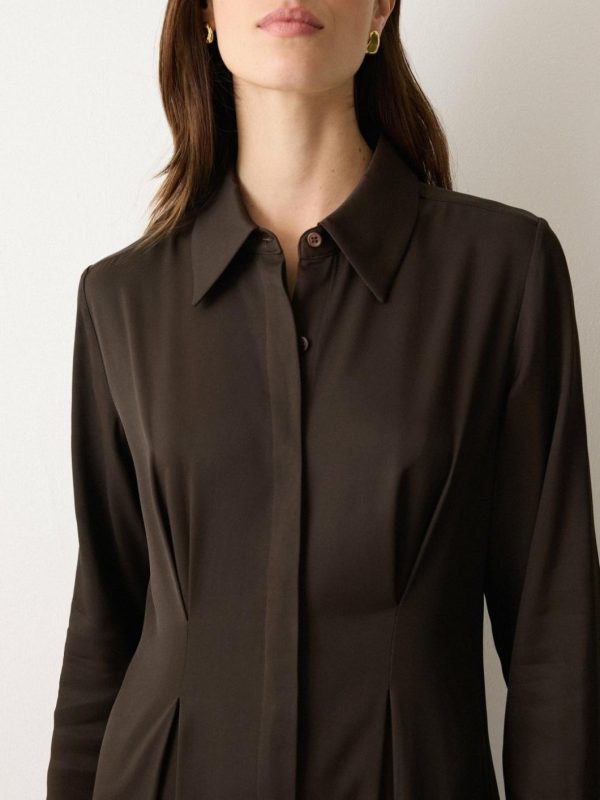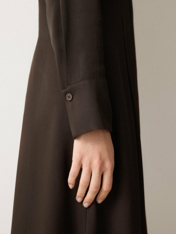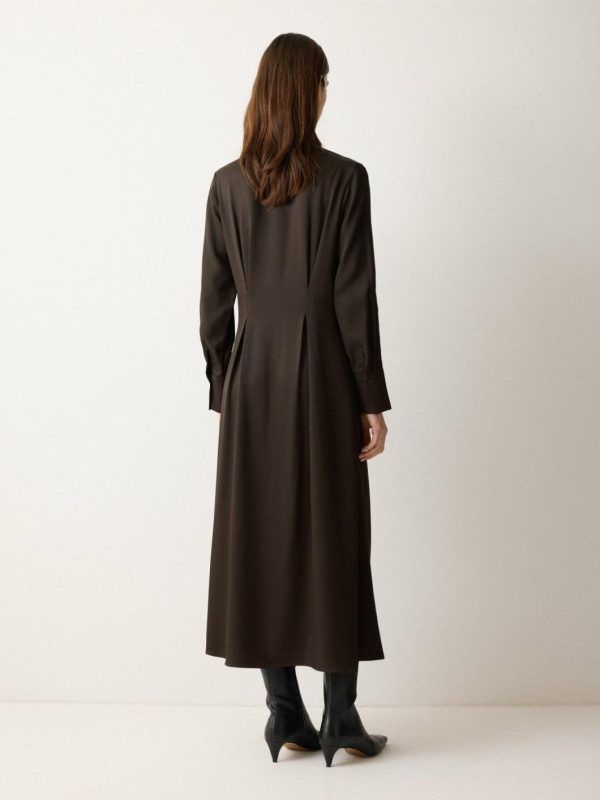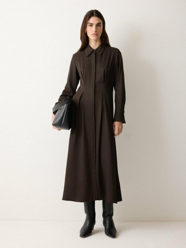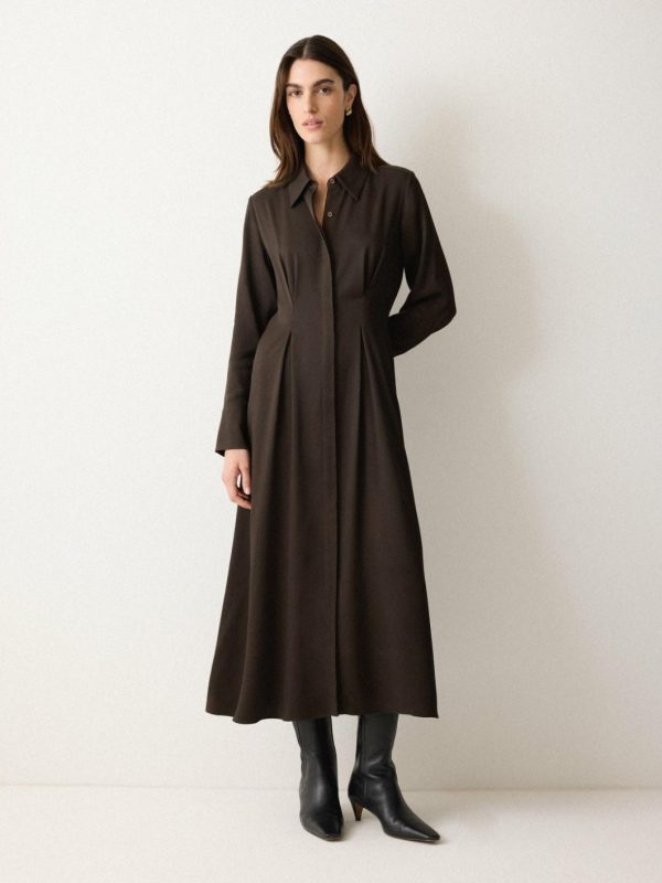 This relaxed shirt dress serves as a wise investment piece for your working wardrobe. Structured yet beautifully drapey in lightweight viscose, this midi dress is elevated with flared cuffs and sophisticated pressing detail that accentuates the waist.