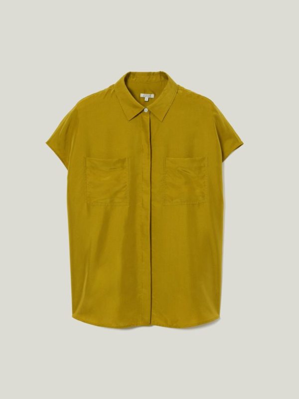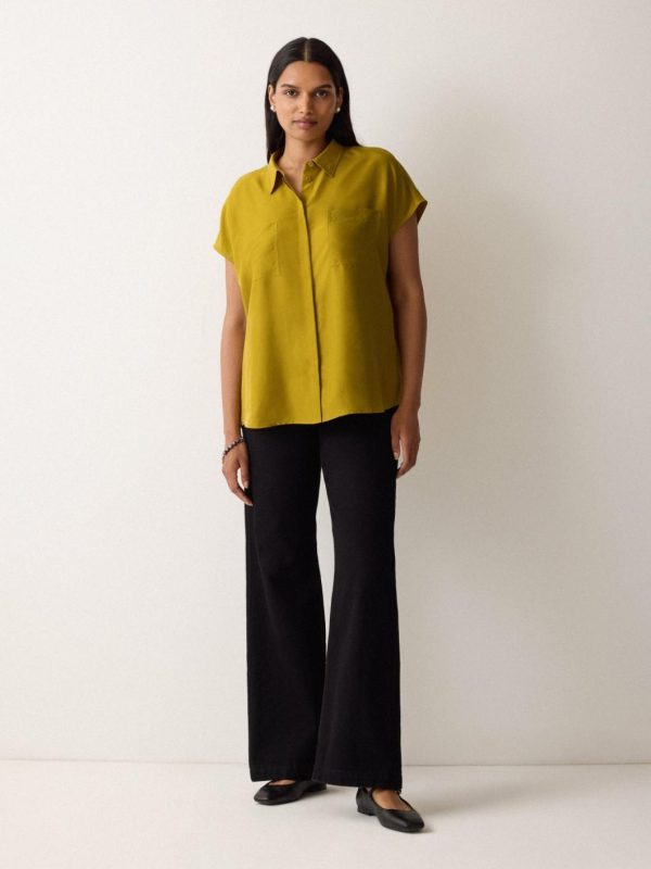Perfect for day or night wear, this button down shirt is detailed with a curved back hem for refined coverage and short capped sleeves that beautifully frame the arms. Chosen for its fluid silhouette and effortless drape, the pure silk fabrication feels exceptionally soft against skin.