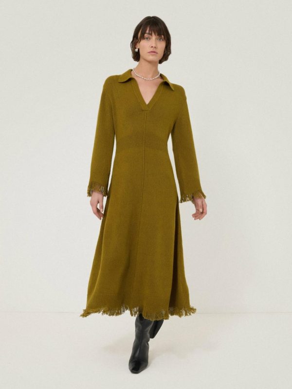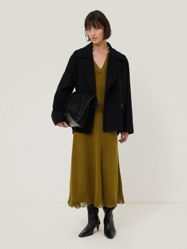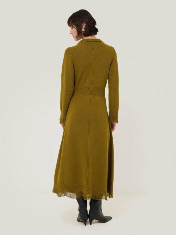 This season sees a reawakening of classics that will work hard in your wardrobe. Included is our luxurious Silk Blend Boucle Fringe capsule, featuring this knitted dress. Textural fringing at the sleeve cuffs and hem lends a contemporary boho feel, with a collared neckline smartening up the design. We also love the stretch ribbed waistband for comfort throughout the day.