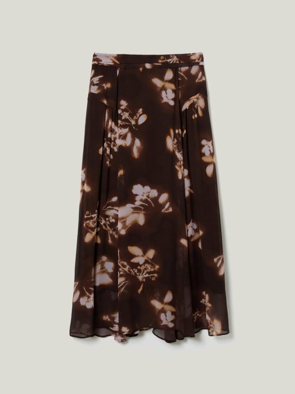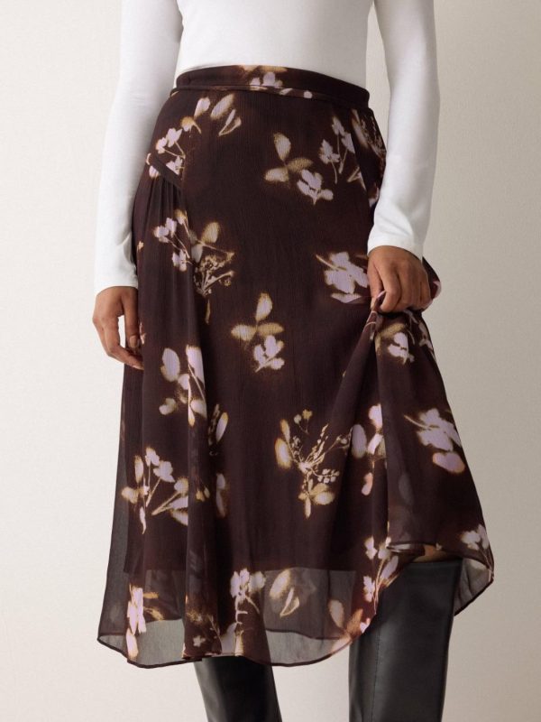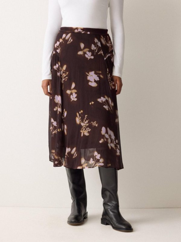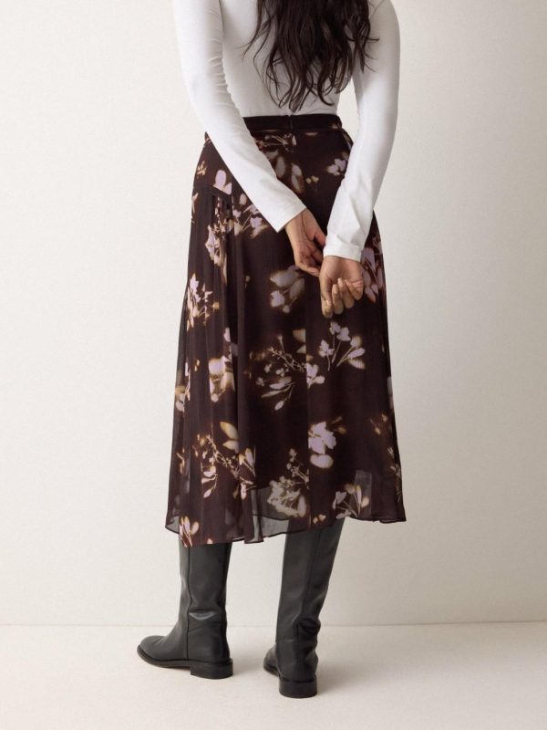 Designed in-house as a nod to the grunge spirit of the 90s, our heritage-inspired Spray Floral print is presented on sheer chiffon, giving this midi skirt a hazy, romantic look. Pair to perfection with a jumper tucked into the waistband.