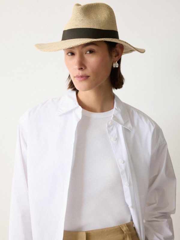 Raffia accessories never go out of style. This fedora hat is a timeless accessory for the warmer months to keep your head cool and your outfit even cooler, finished with a chocolate grosgrain band.