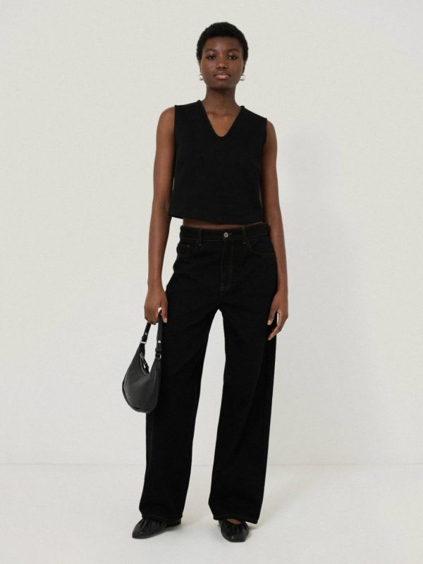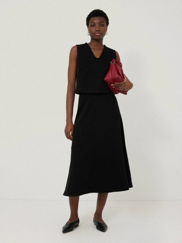 Designed as part of a co-ord, this black top has been crafted from a mid-weight crepe ponte jersey, lending structure to the cropped boxy fit. Detailed with a scoop V-neck and pintuck detail to the back, wear with the matching skirt for easy elegance during the summertime or mix and match with other pieces in your wardrobe.