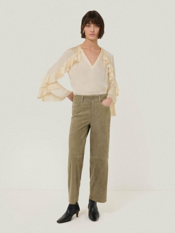 There’s always room for 70s-inspired suede in the wardrobe; timeless, sumptuous and comfortable, these trousers are designed with a laidback, straight leg fit, a cropped ankle and classic 5-pocket detailing.A ruffled blouse will add a romantic spin.