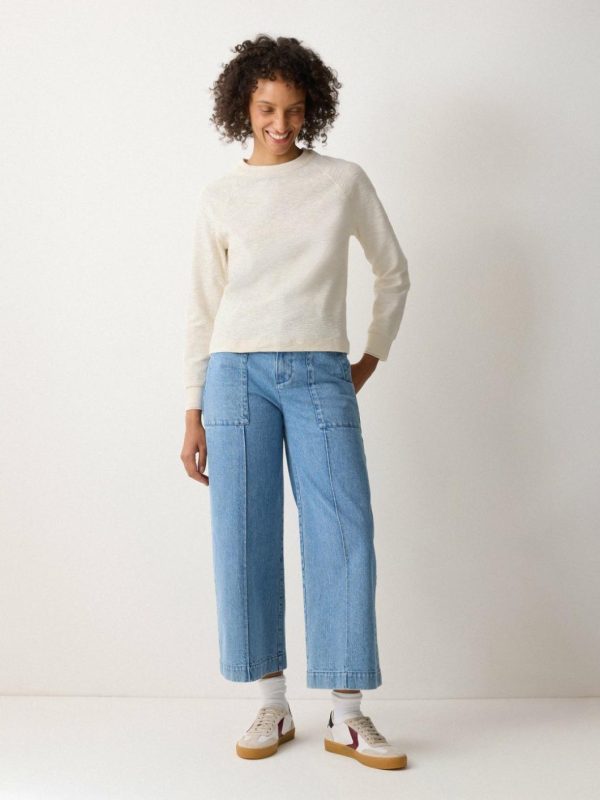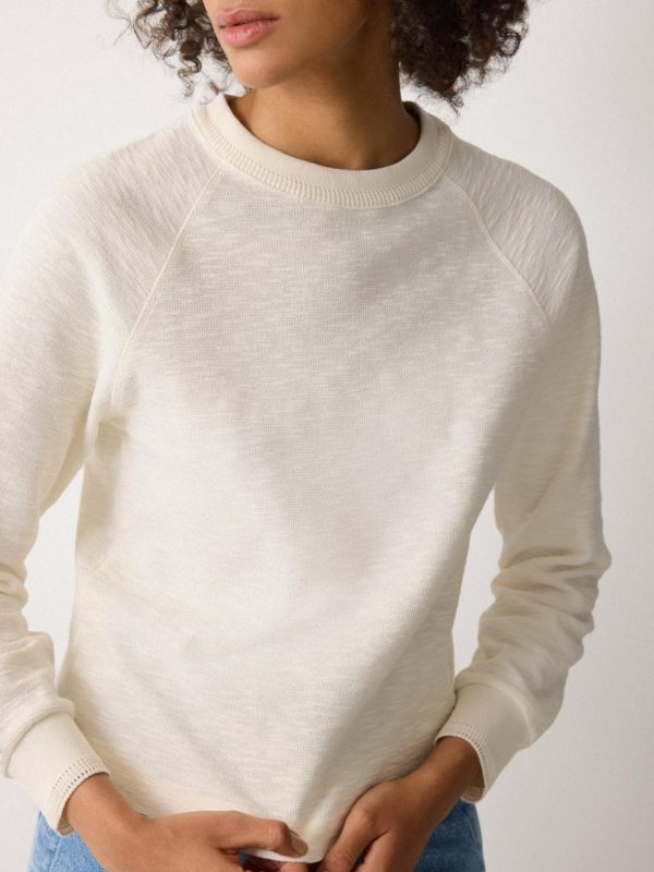 The classic crew neck receives a casual rework in a textured slub jersey for the new season, with fine ribbed crochet cuffs adding a subtle touch of elegance to this versatile wardrobe piece.