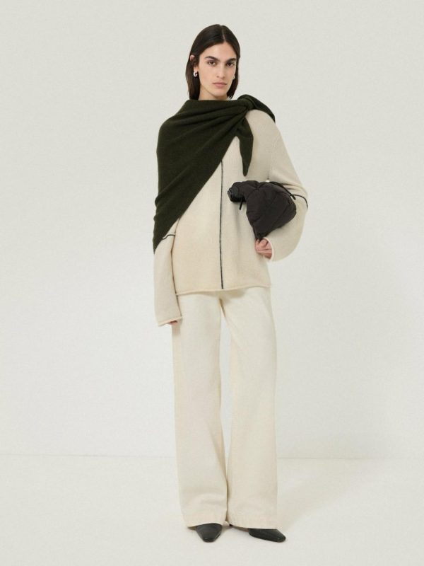 Triangle Knitted Scarf Dark Green | Women Jigsaw Cashmere