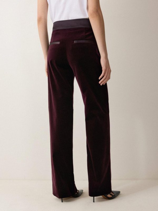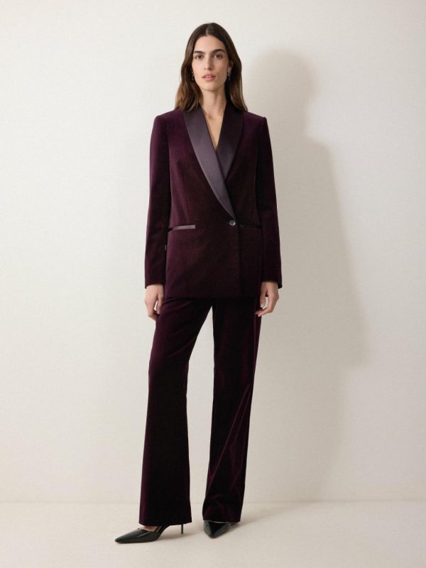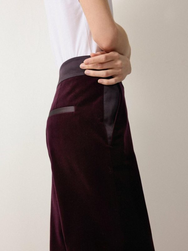 Designed as part of a co-ord, these tailored trousers, which form part of a full tailored suit, are enriched by the lustrous texture and tactility of velvet. Smooth satin trims add an elegant and sophisticated twist, while the slim fit through the hips and thighs is accentuated by a slight kick flare hem that falls perfectly over boots and heels.