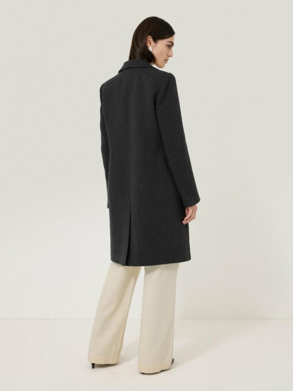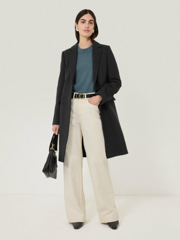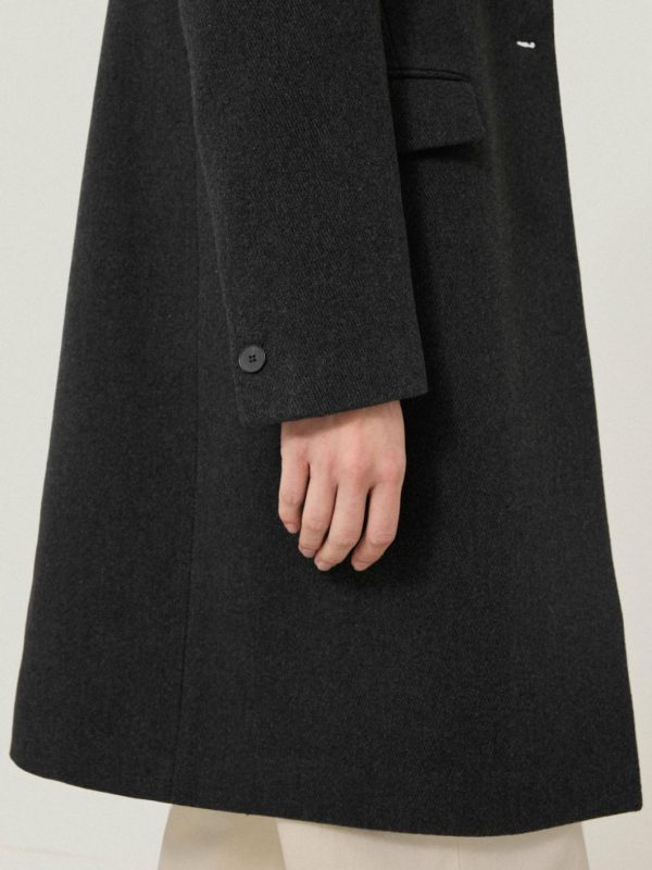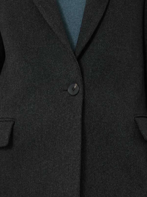 Patterned in-house and crafted from a lustrous, pure brushed wool, the city coat is designed with a softer shoulder for a more relaxed fit. The single-breasted front is accented with a button closure, a melton under collar and jet flap pockets. A winter staple that styles perfectly over denim or tailoring.